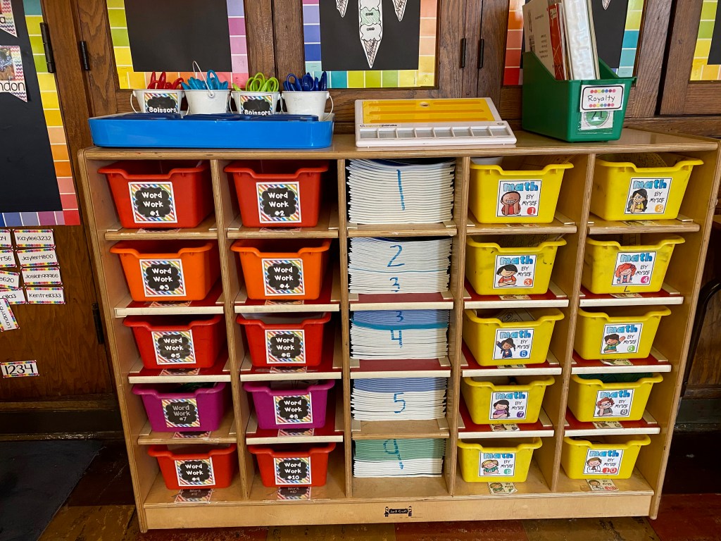 If you can’t tell, I am NOT a fan of Desks! Ok, ok – you can put all their supplies inside, keeping your shelves clear in order to use the space for the PLETHORA of other things every Kindergarten class has. But I don’t know if you know 5 year olds, but it was a constant battle of “Leave the things inside your desk alone”, “Just because you’re sitting in their seat for centers does NOT mean you get to go rummaging in their desk!” and more and more.