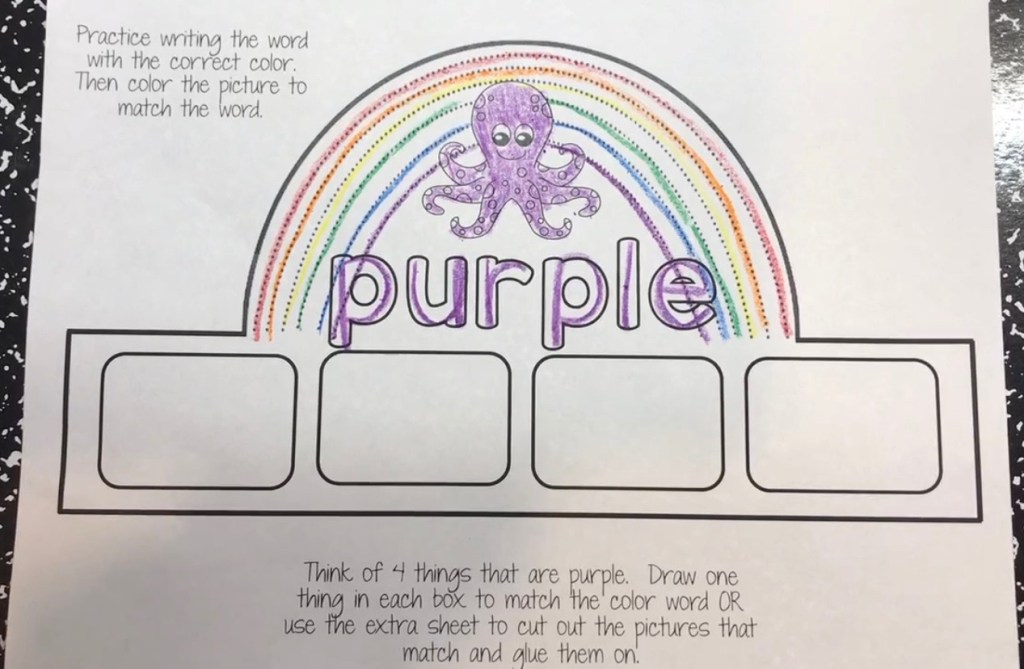 It has GREAT real world pictures inside, and helps the students name things that are the focus color. We also create an anchor chart together, where I select students to tell me something that is the focus color and I (to the best of my ability) draw it and label it on the chart. This helps students when we are writing in our journals about the color, or give us ideas on what to draw on our hat, etc.