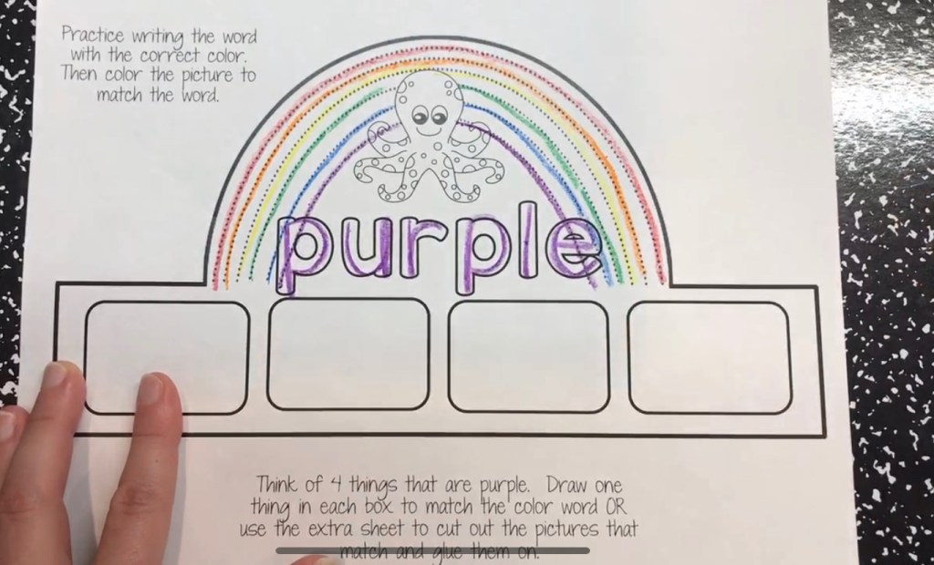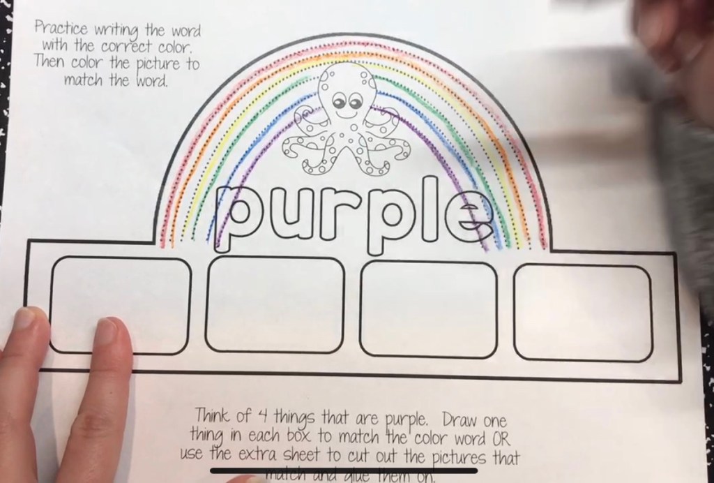 4th: This is where the options come in – Color the pictures provided OR draw your own. I do suggest that if the picture isn’t supposed to be the focus color that the students practice drawing an X on it. This will help TONS when they cut out the pieces (and things inevitably get mixed up!)