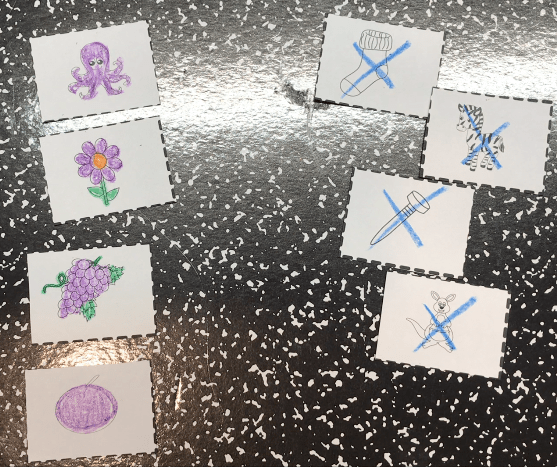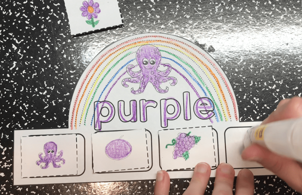 If you have the students draw their own 4 items. I always ask students for suggestions on what I can draw on my hat, that way if a student doesn’t have any ideas, they can at least look at my hat and use those ideas. Also, during a previous time in the day, I have read a book about lots of different things that are that focus color. I LOVE this set:
