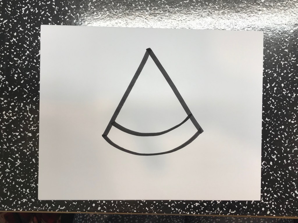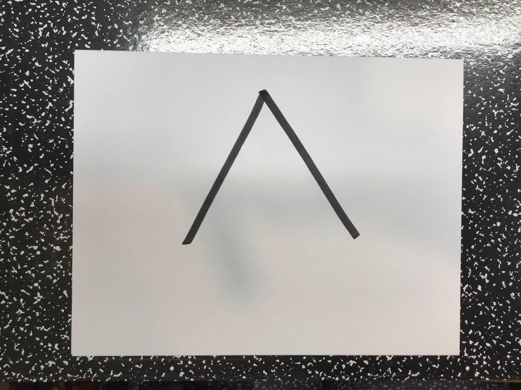 First I draw 2 diagonal lines. It makes it look like a mountain.