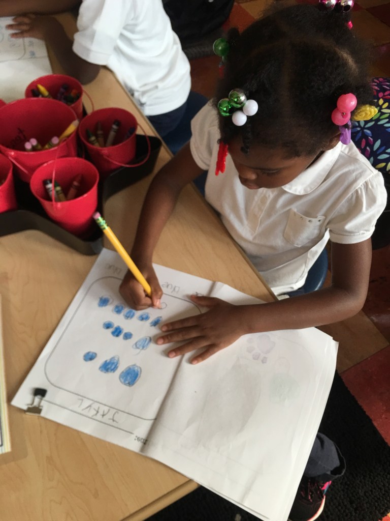 I provide each student with a My Color Writing Notebook which you can download for free here. Here’s Jakyla using her Color Writing Notebook: