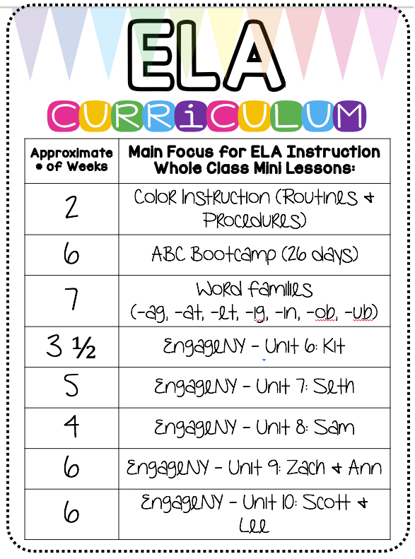 My curriculum for ELA usually breaks down to be something like this: (and remember… its all based on the students that sit in front of me, so each year is a little different)