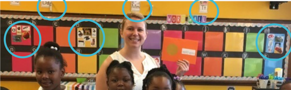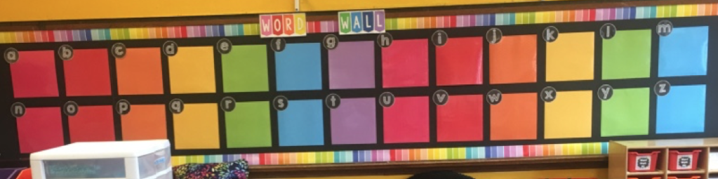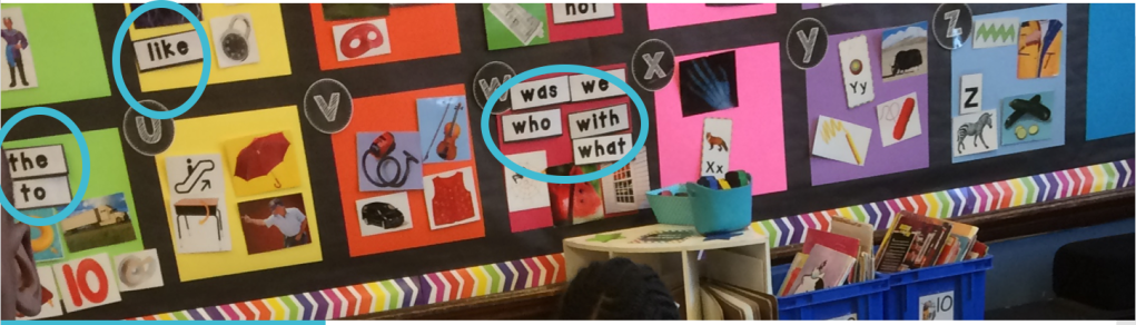 As we build words on the Word Wall we start to take pictures down to make space. So it begins to transition from a Picture Wall to a Word Wall.