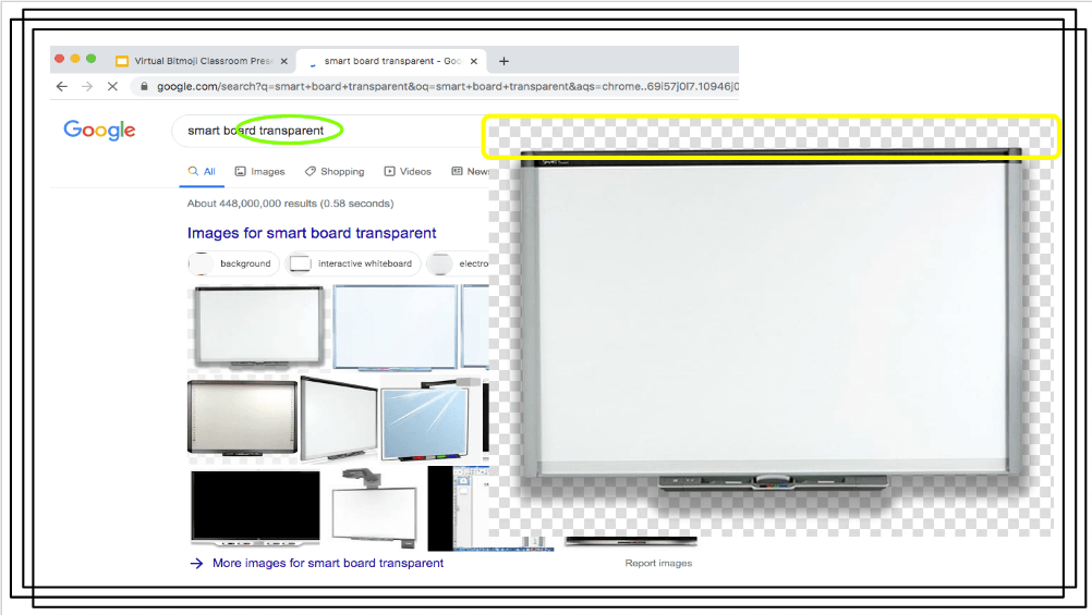 When I search for “Transparent Smart Board” in the search board, let’s be honest, the options weren’t great. BUT you can also open up a new tab and use the real google image search, so that’s what I did. I made sure that I still search using the word: TRANSPARENT.